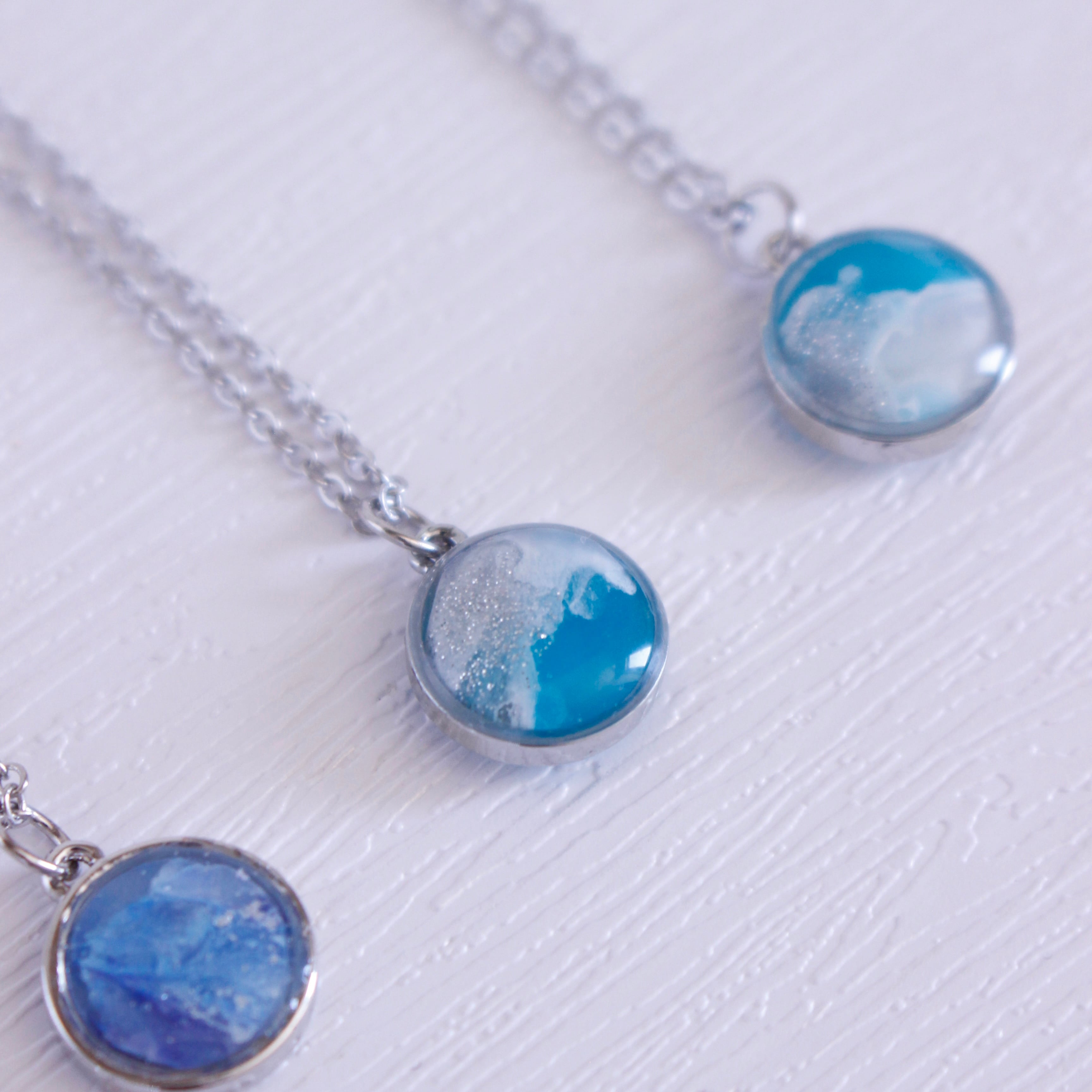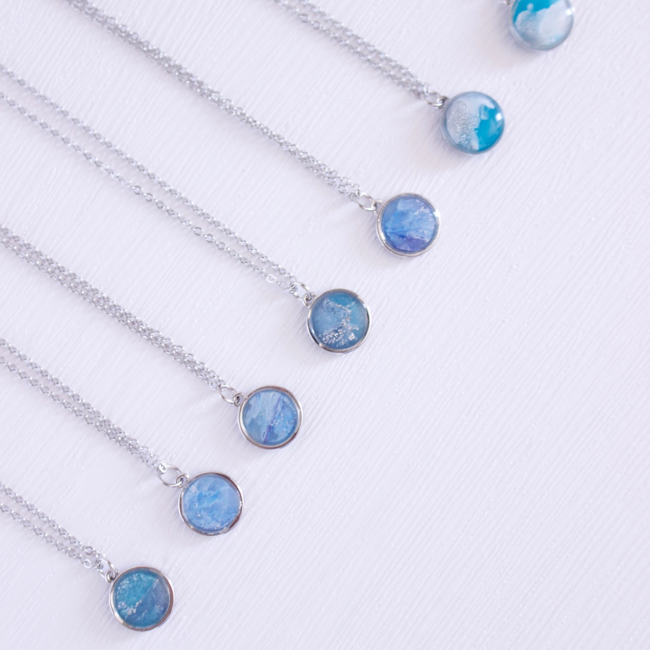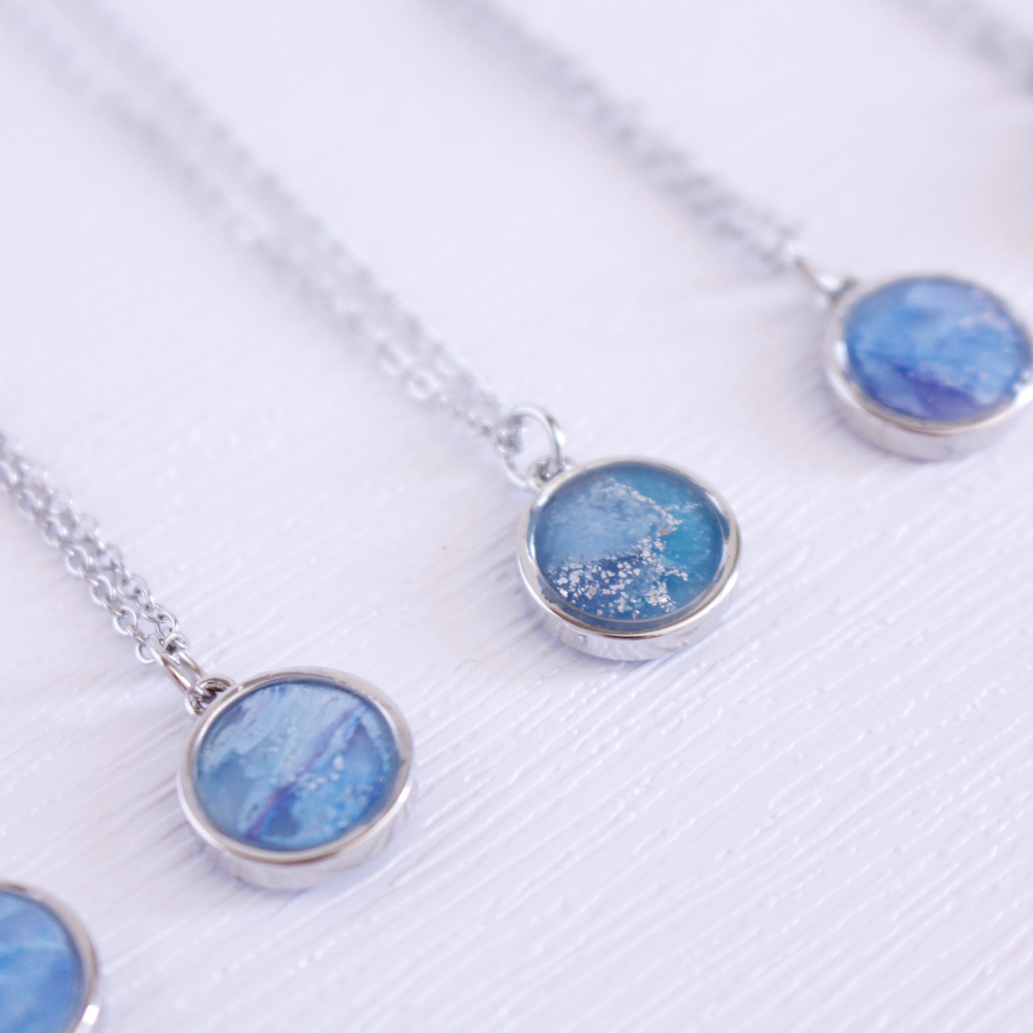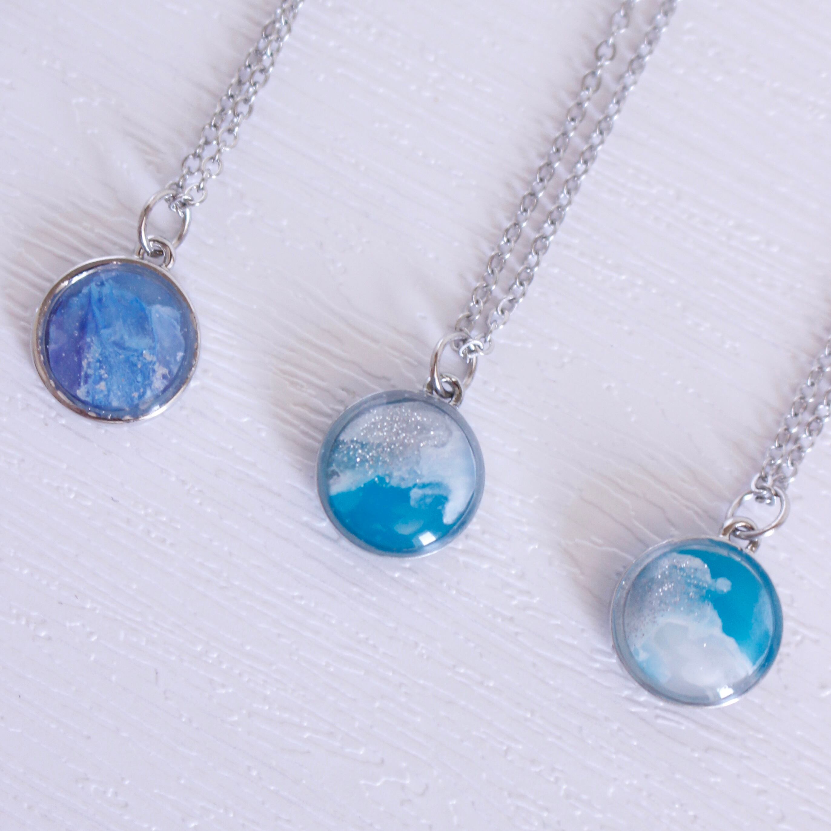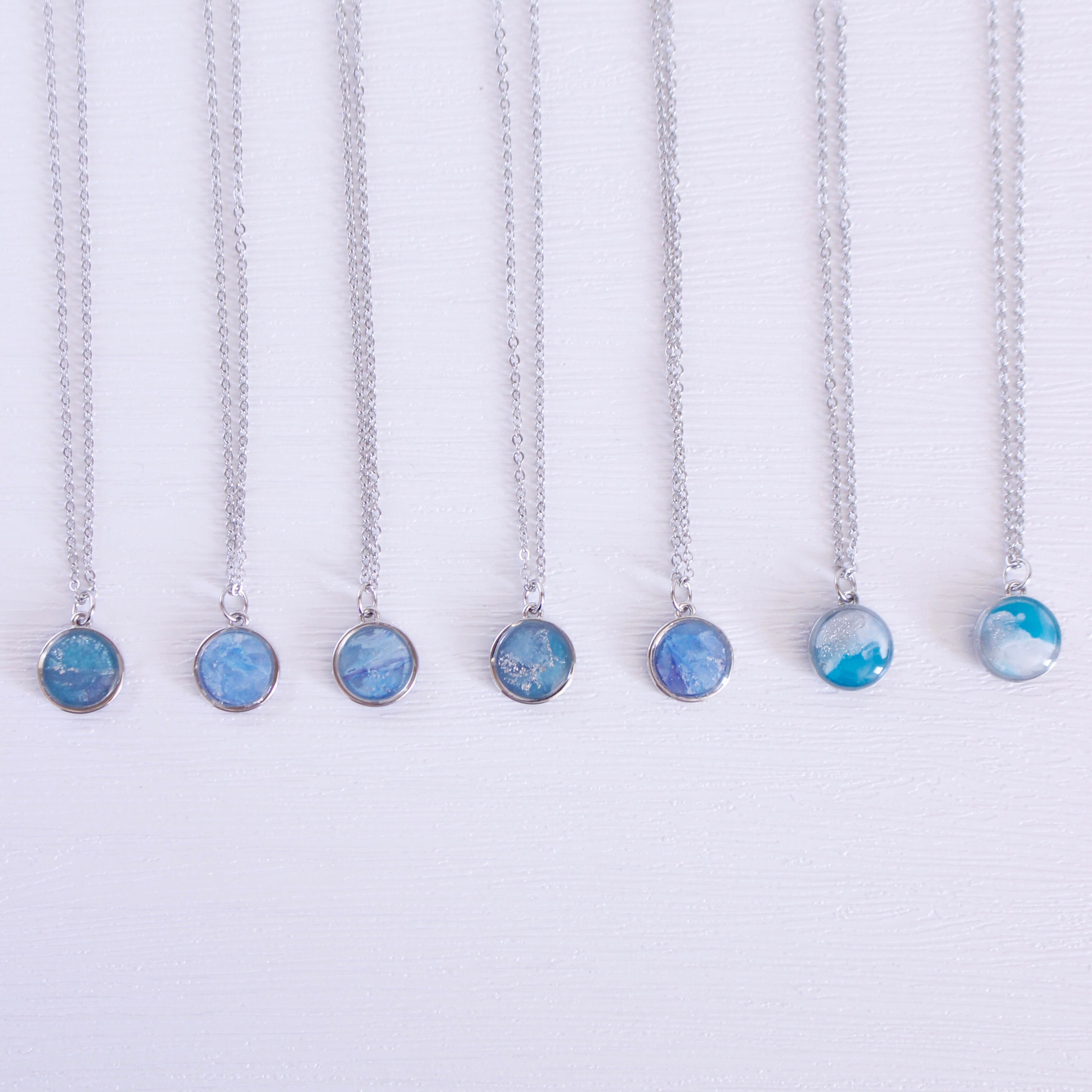 青く煌めく海を丸い枠に埋め込んだネックレス