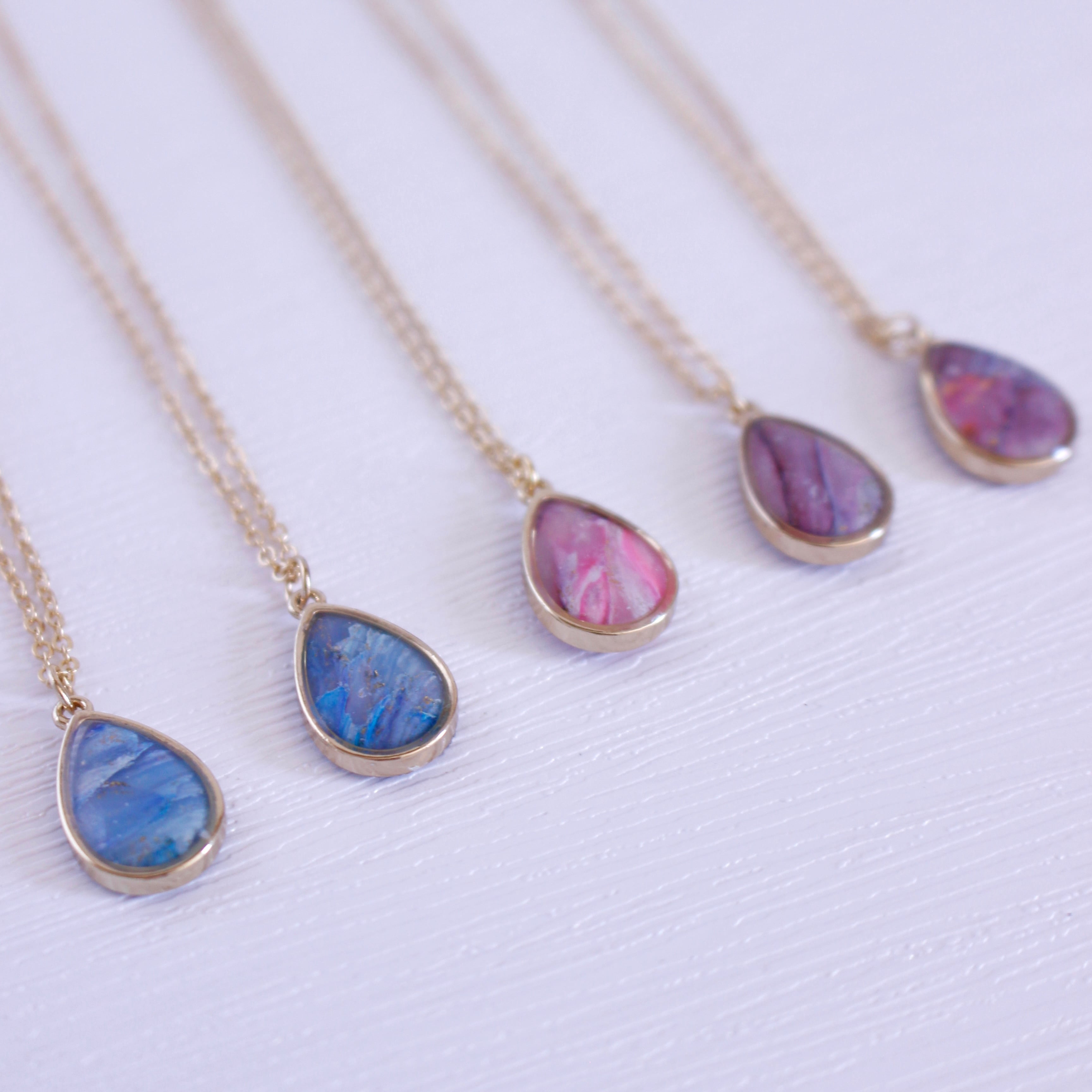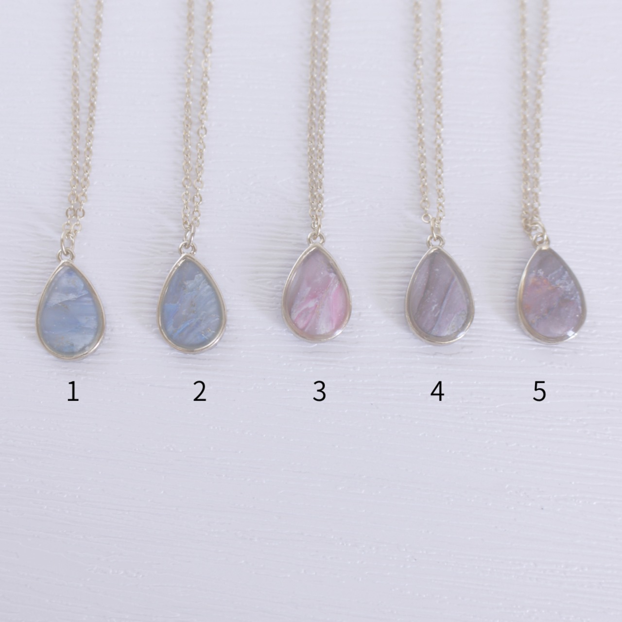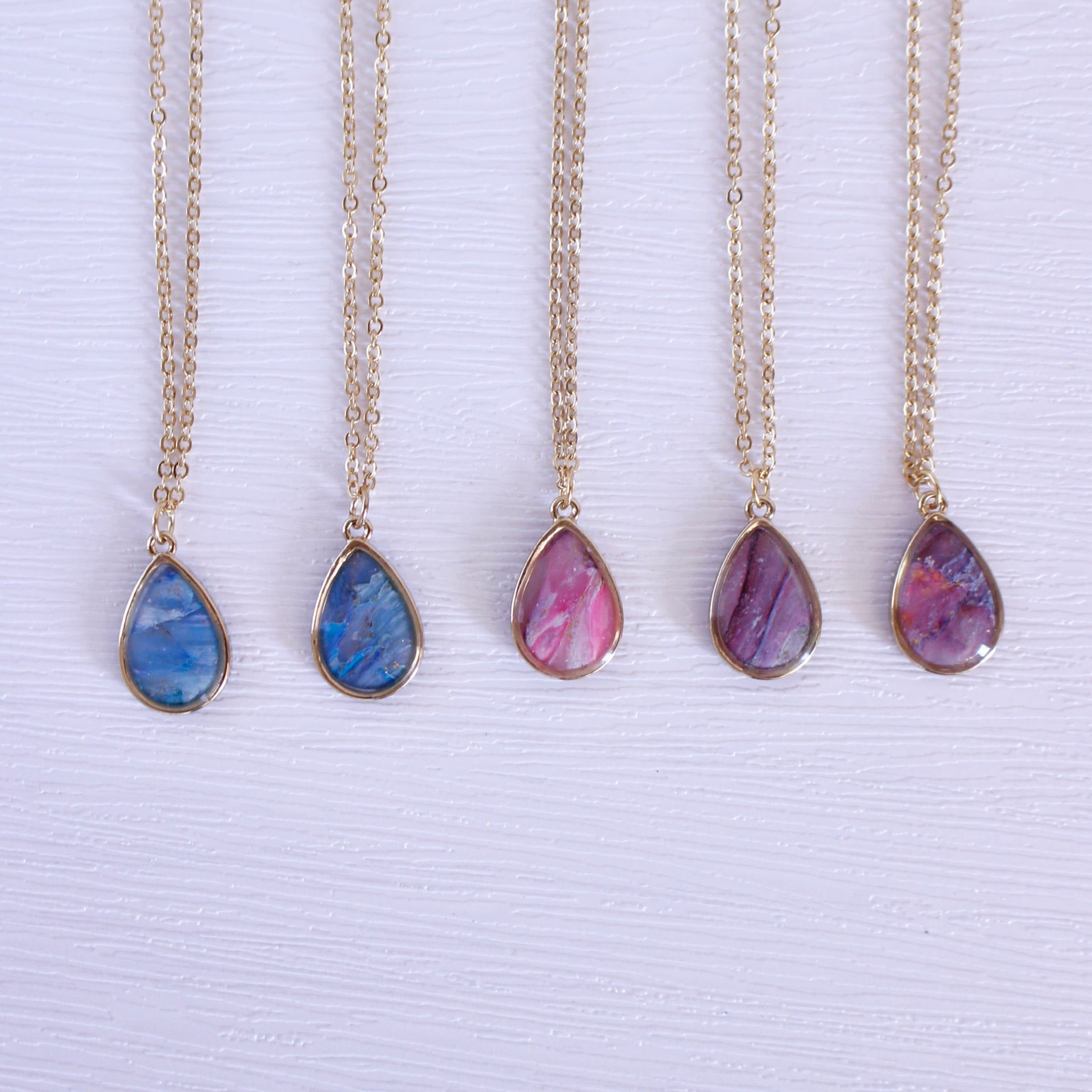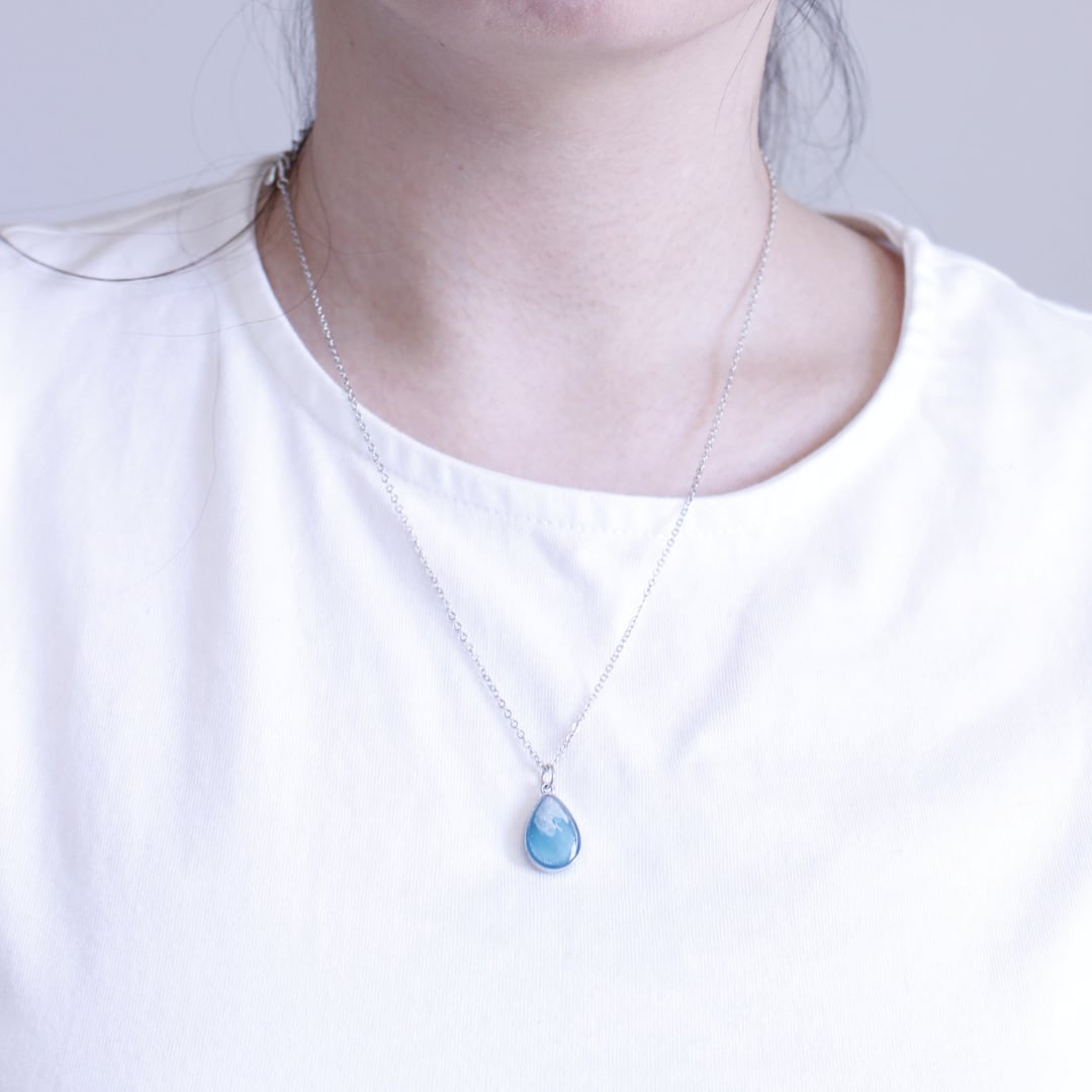 大理石のような煌めく柄を雫に埋め込んだネックレス