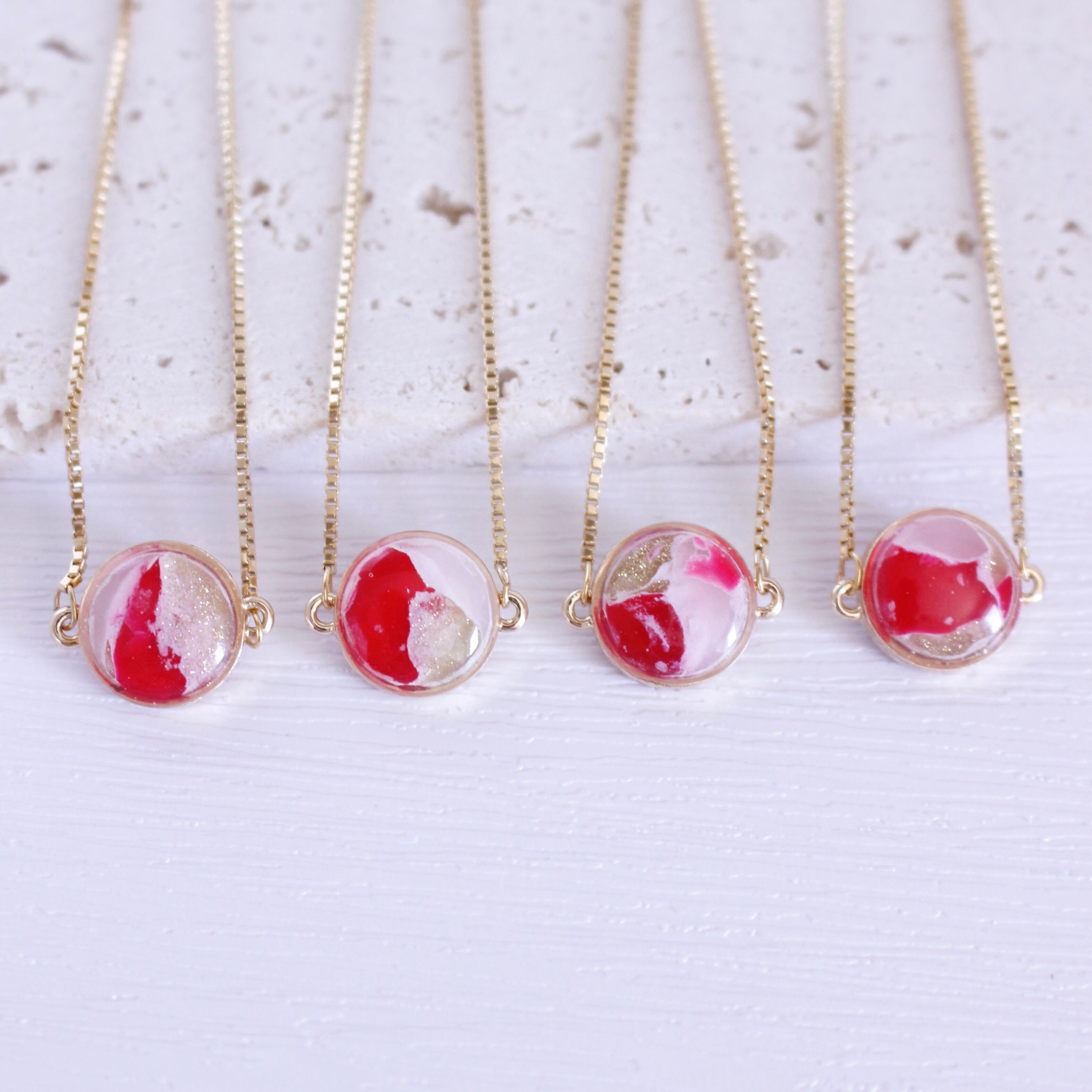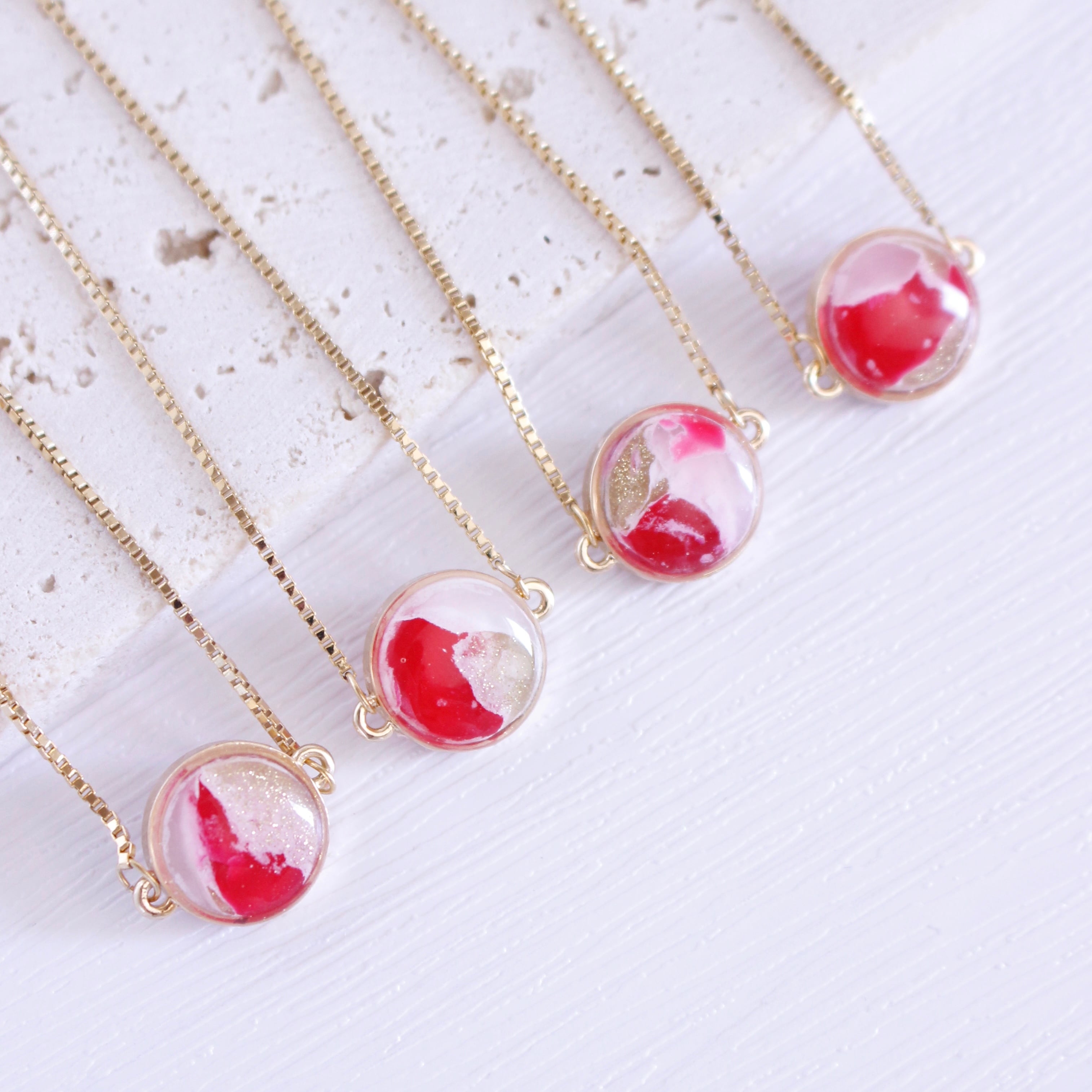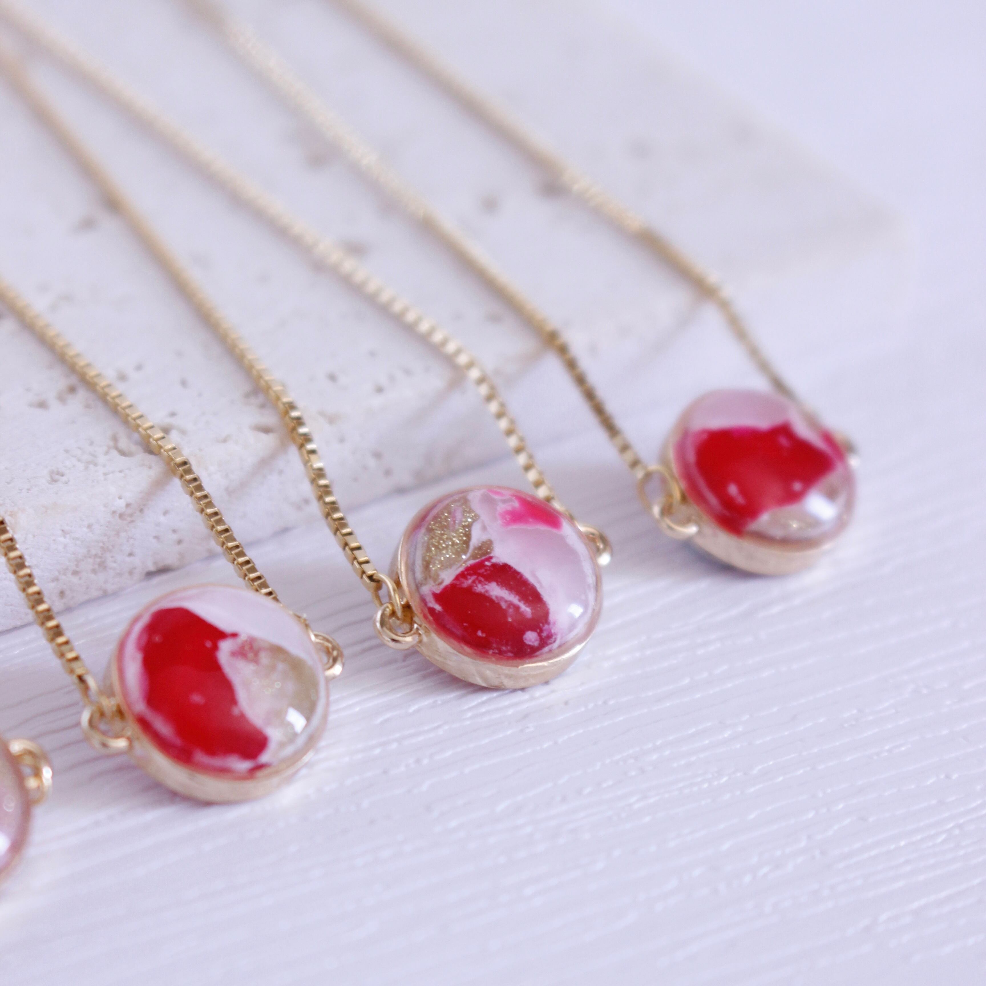 丸い枠に大理石のような赤い柄を詰め込んだブレスレット