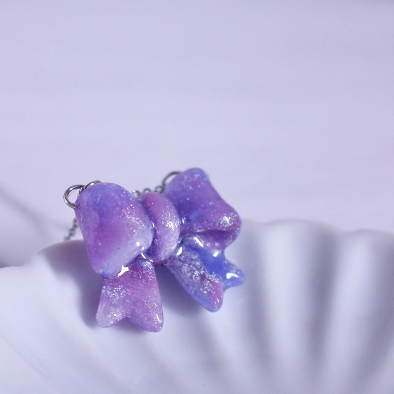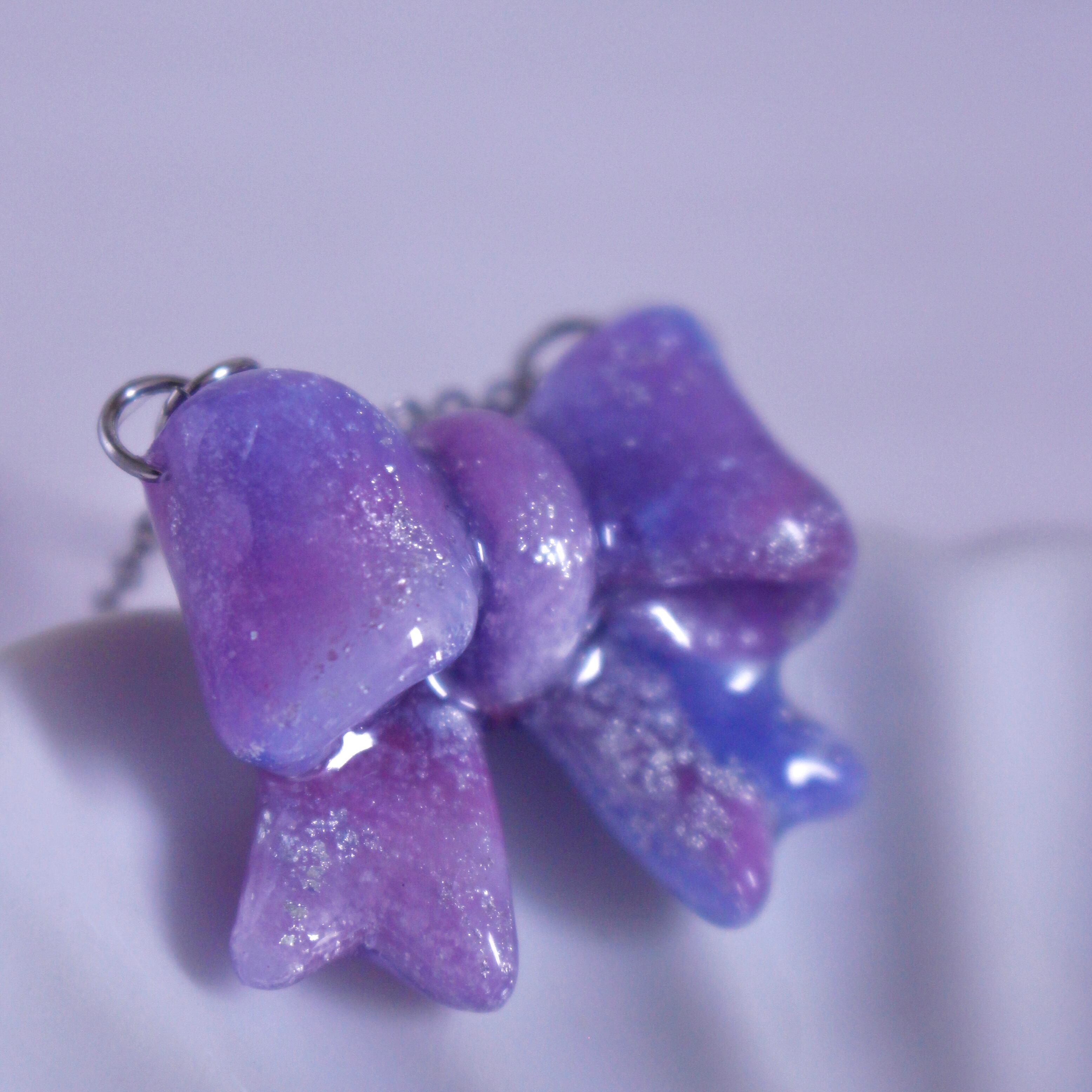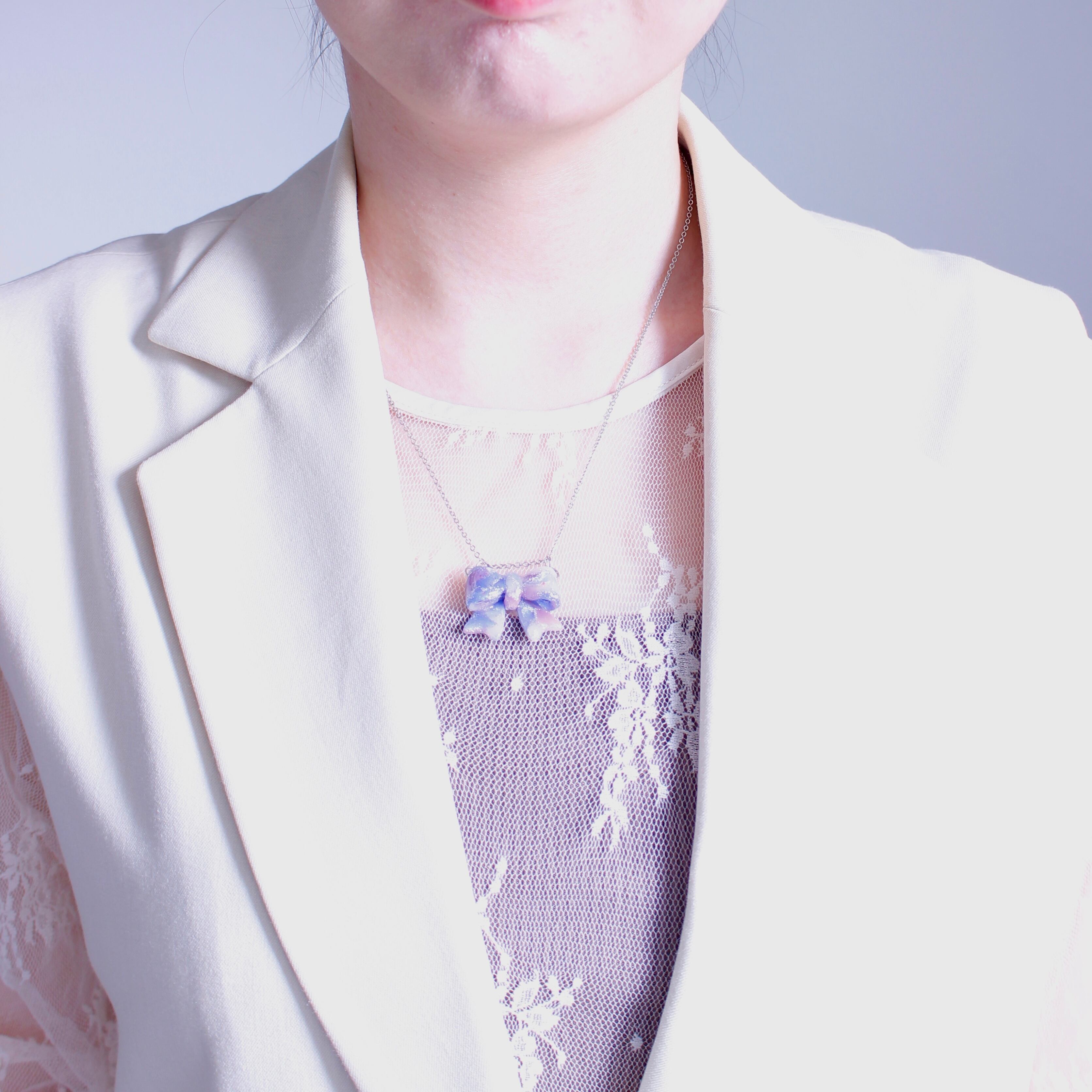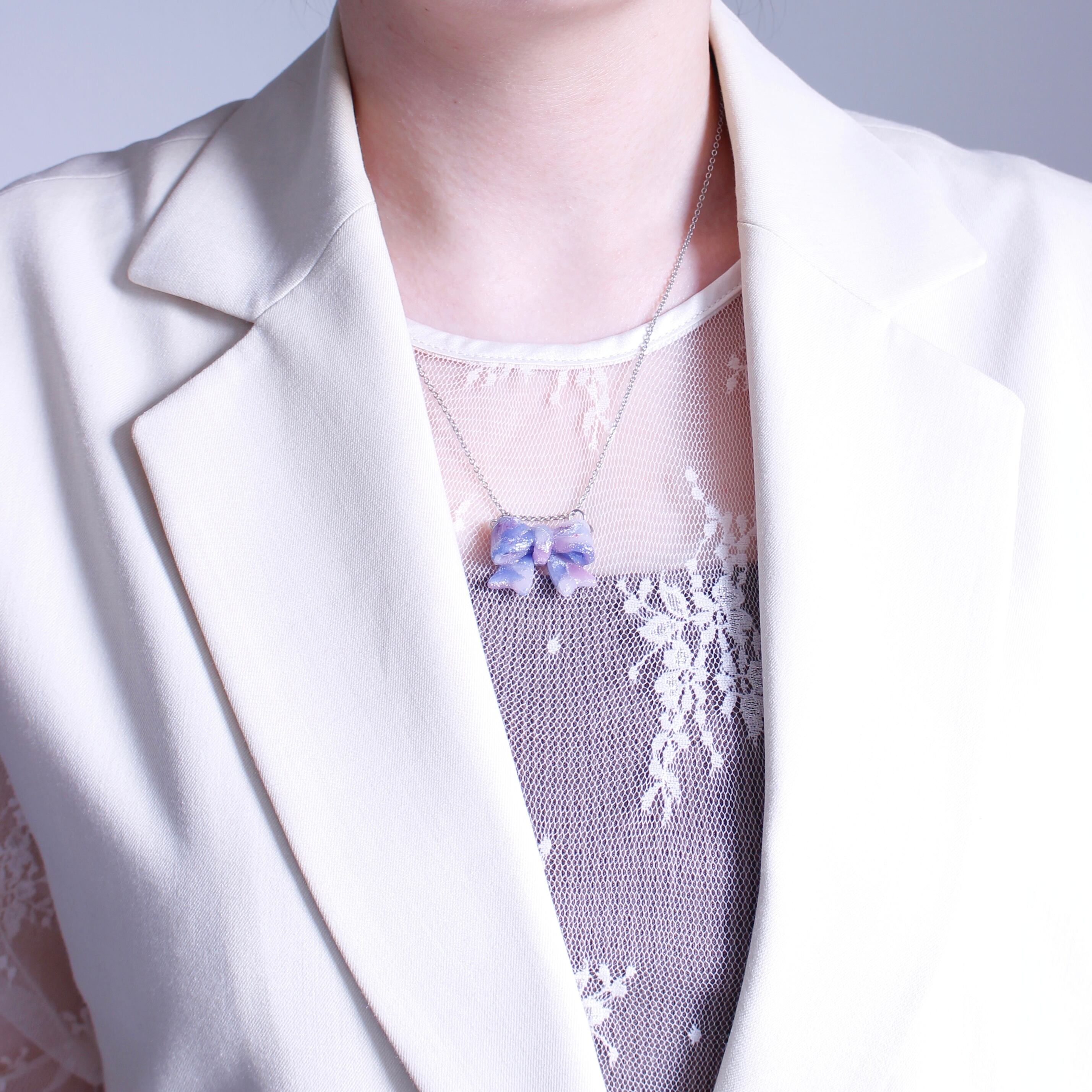 夜空に移り変わる空模様をリボンに詰め込んだネックレス