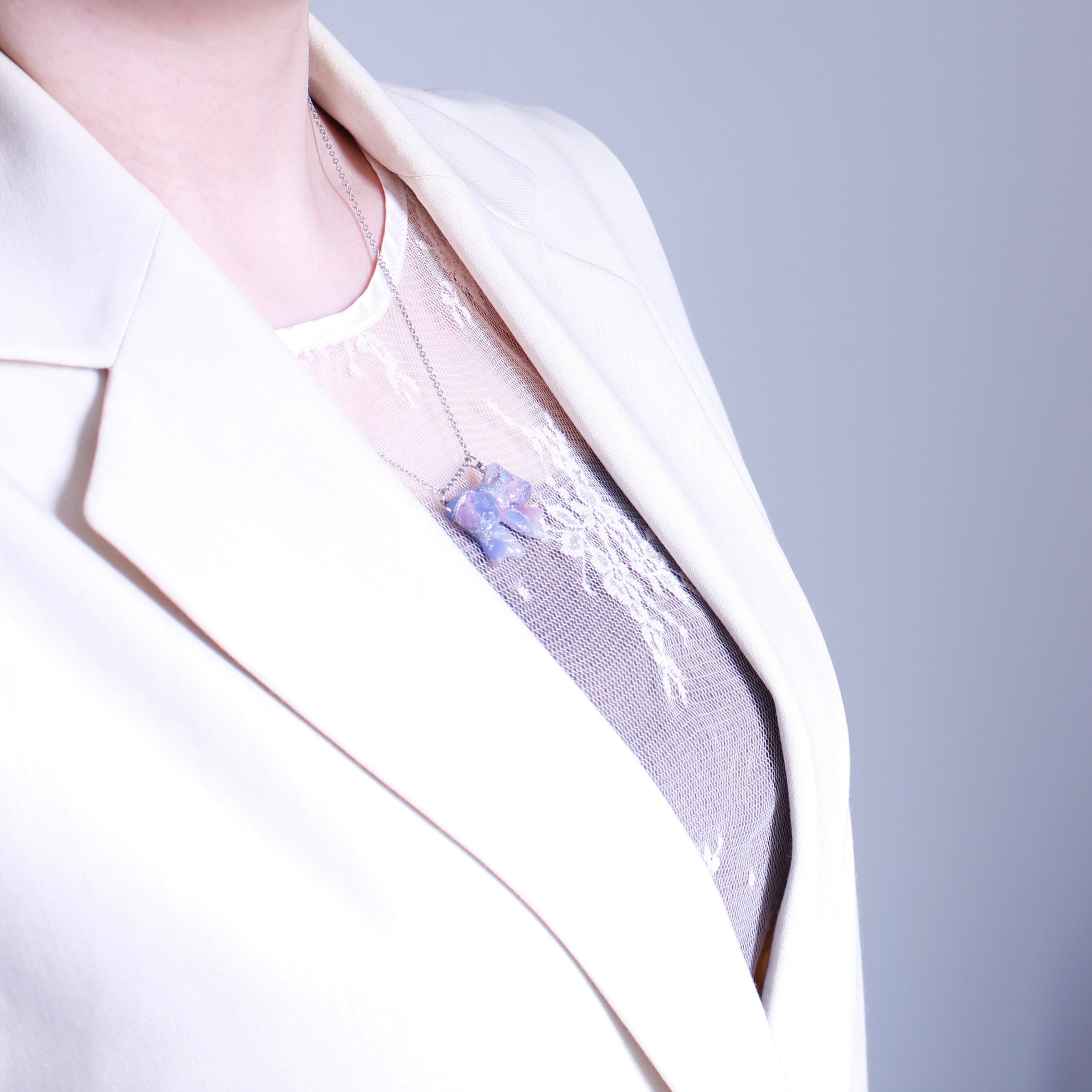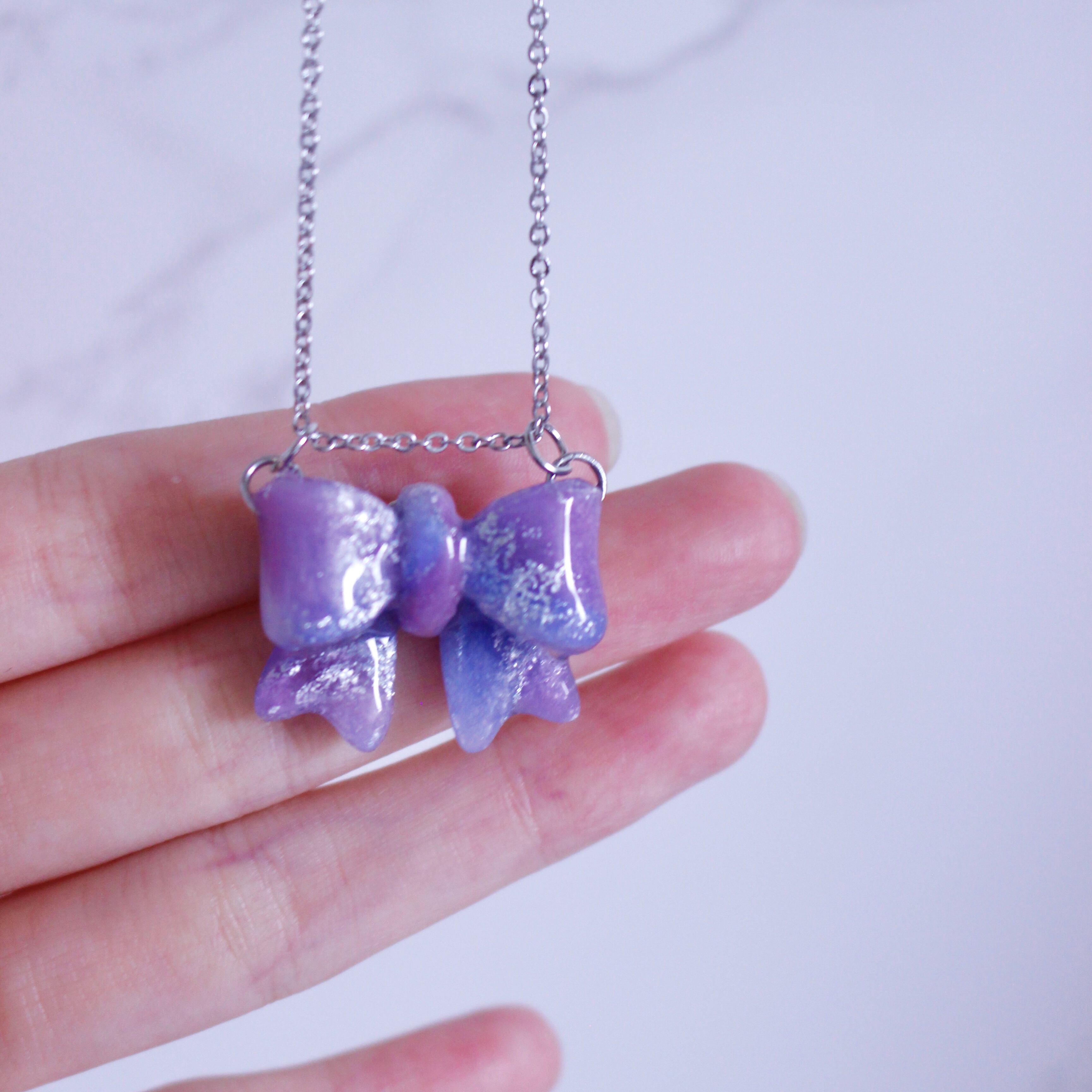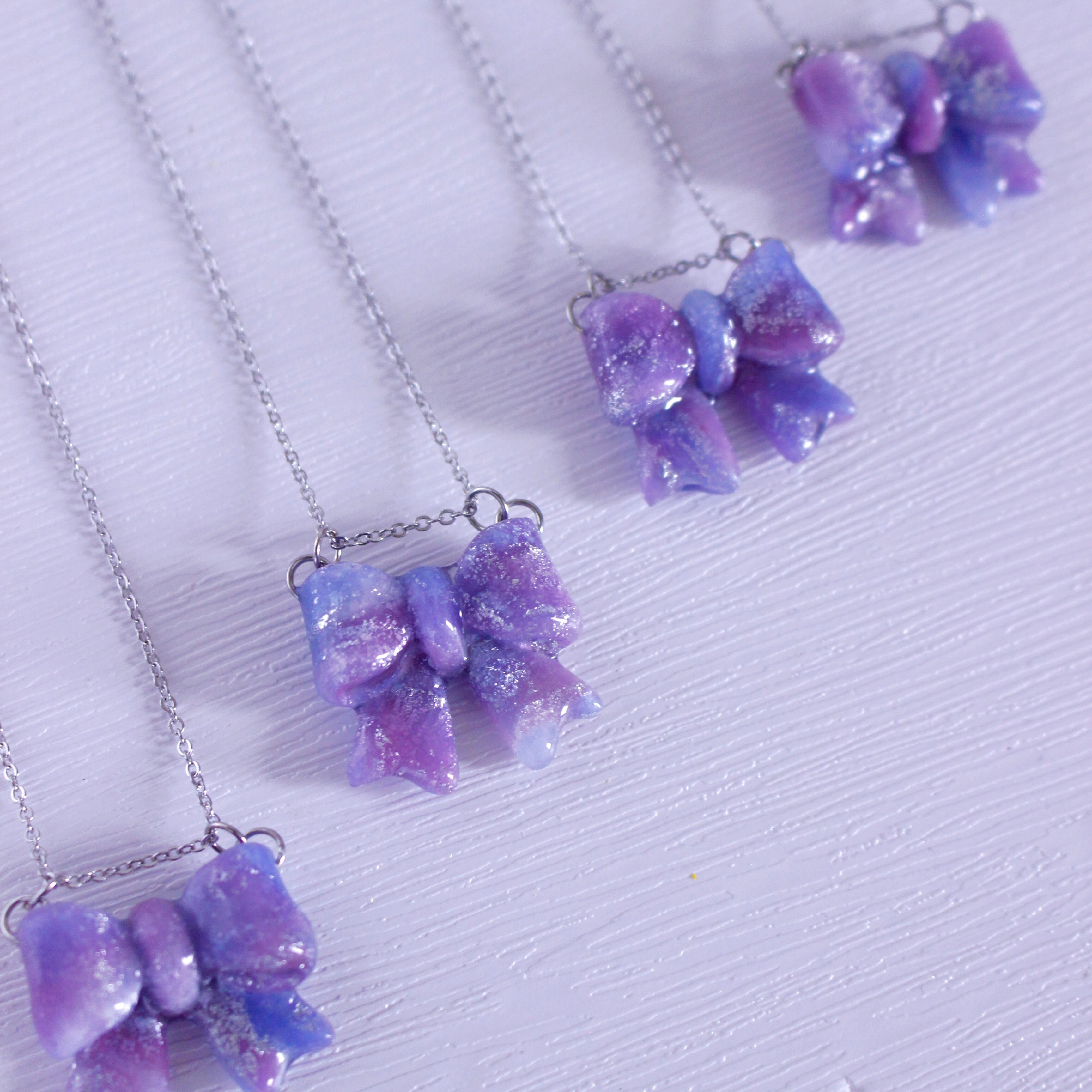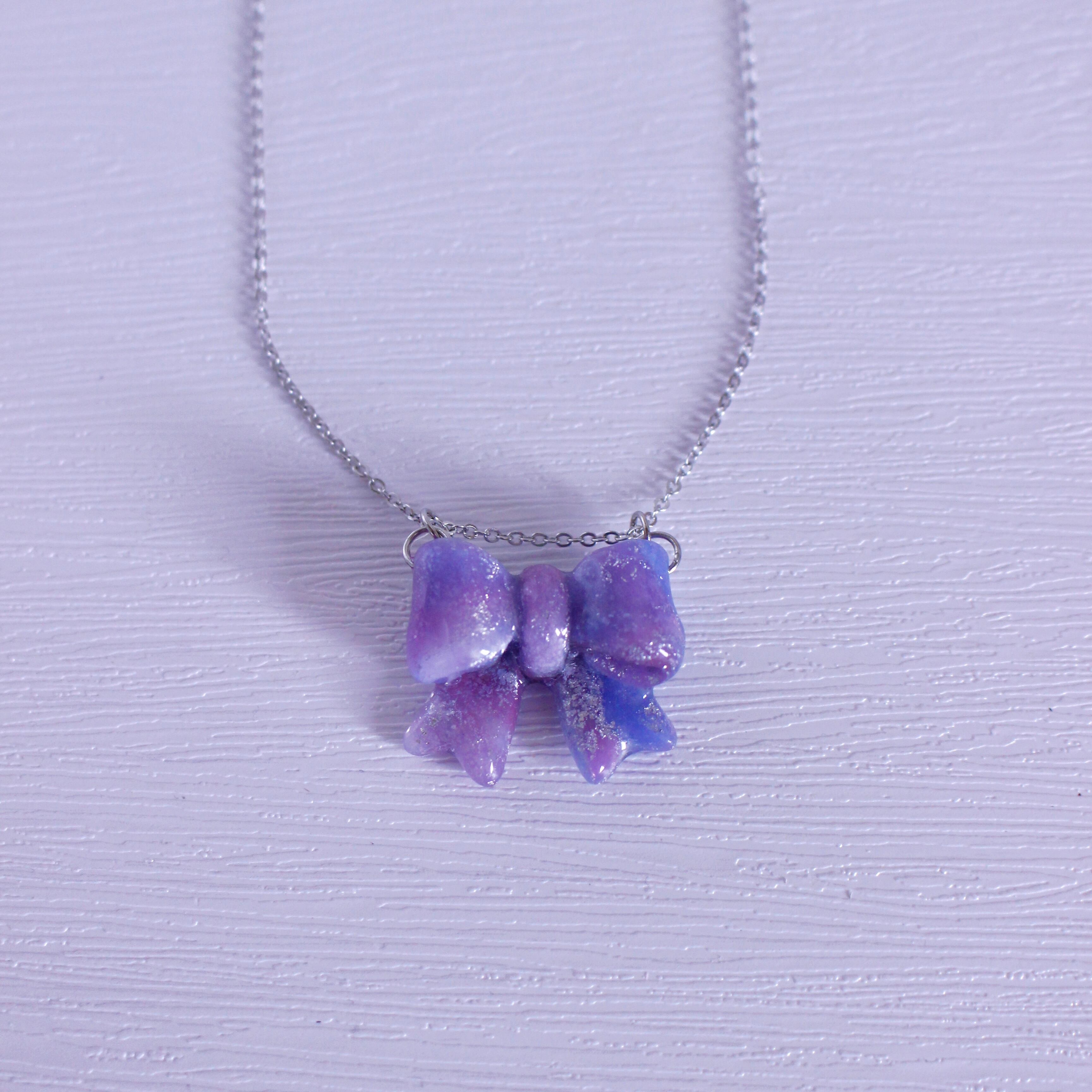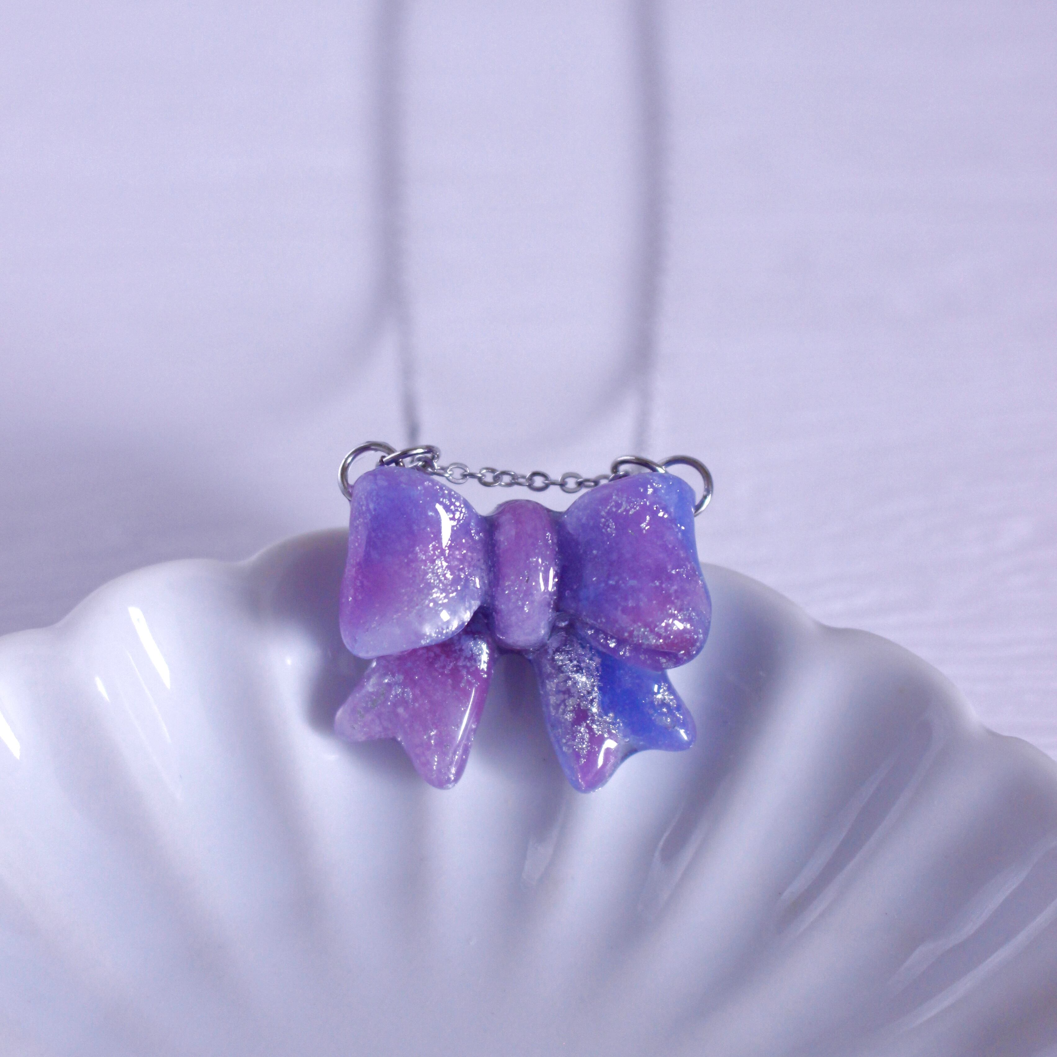 夜空に移り変わる空模様をリボンに詰め込んだネックレス