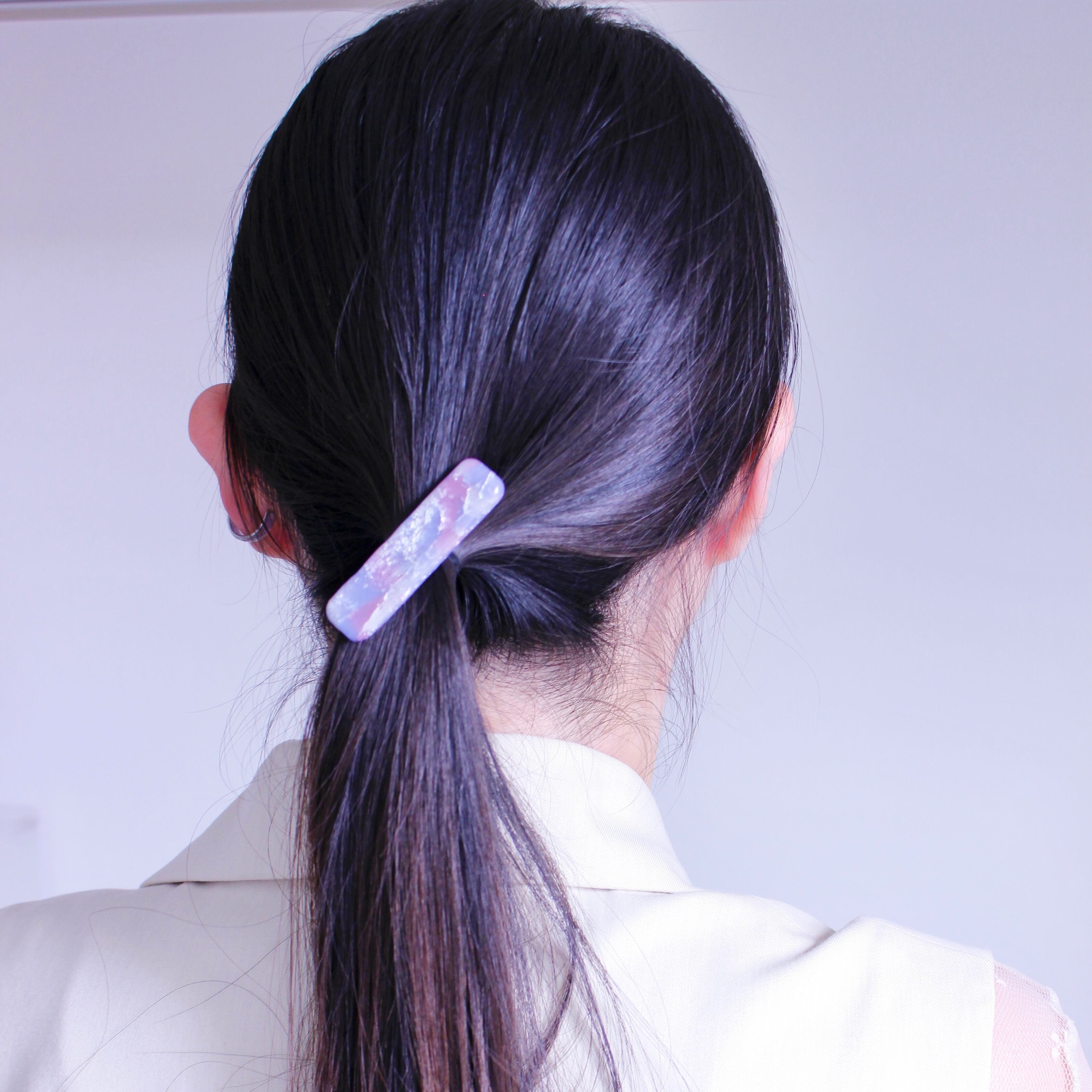 シンプルなスクエア型にしたヘアクリップ