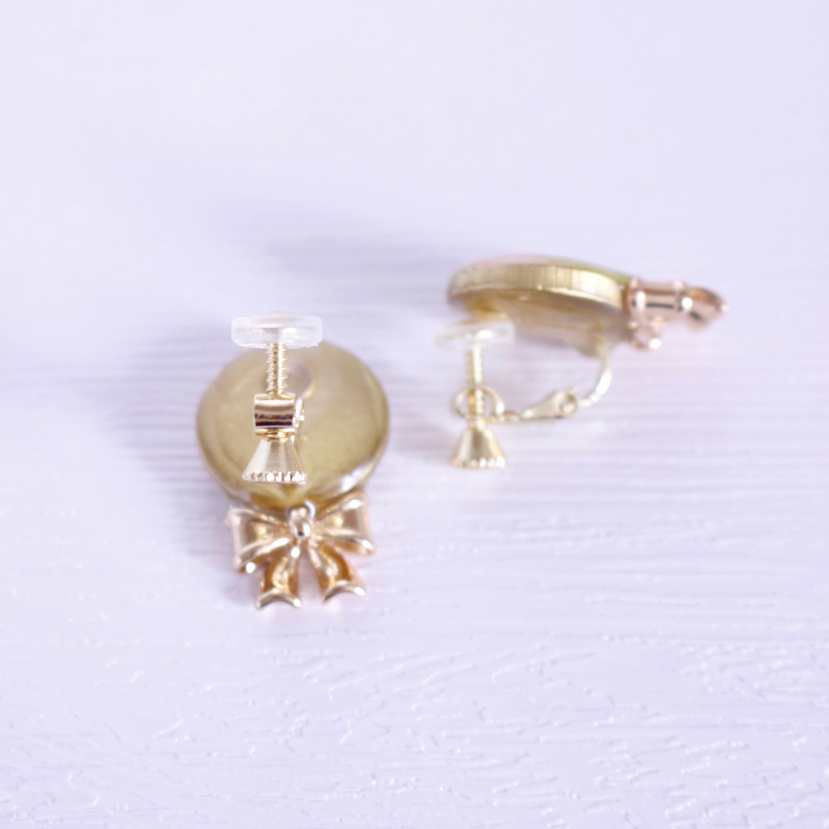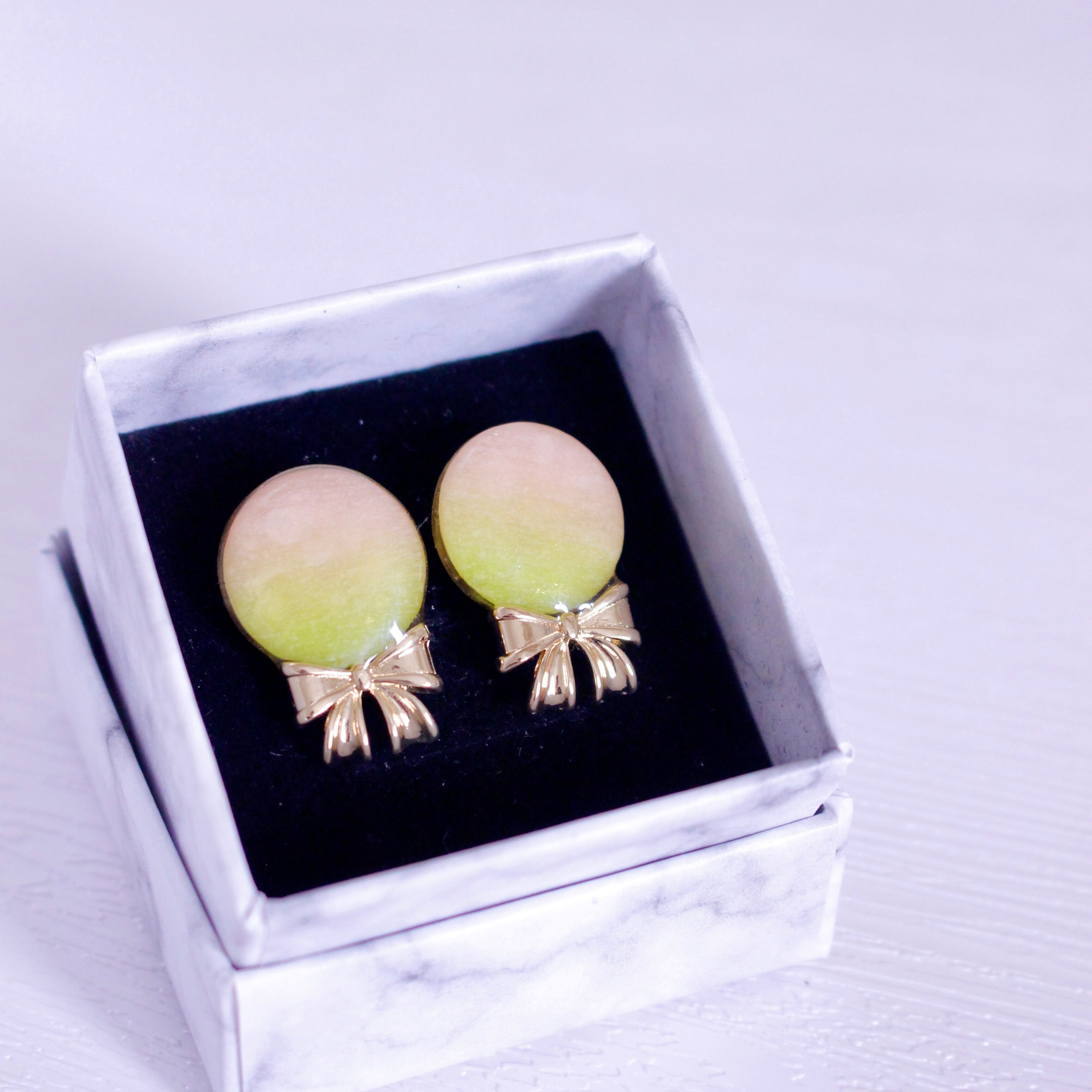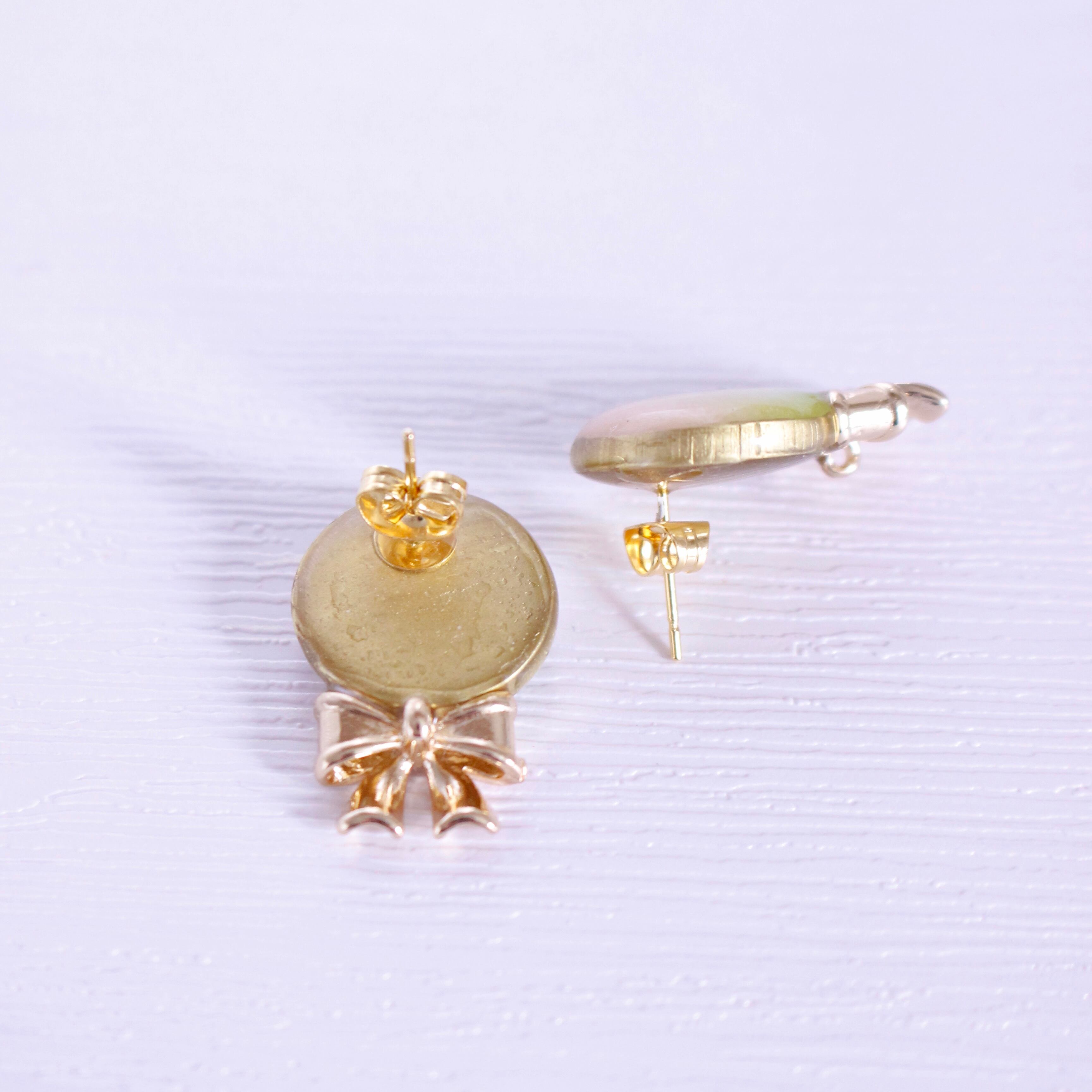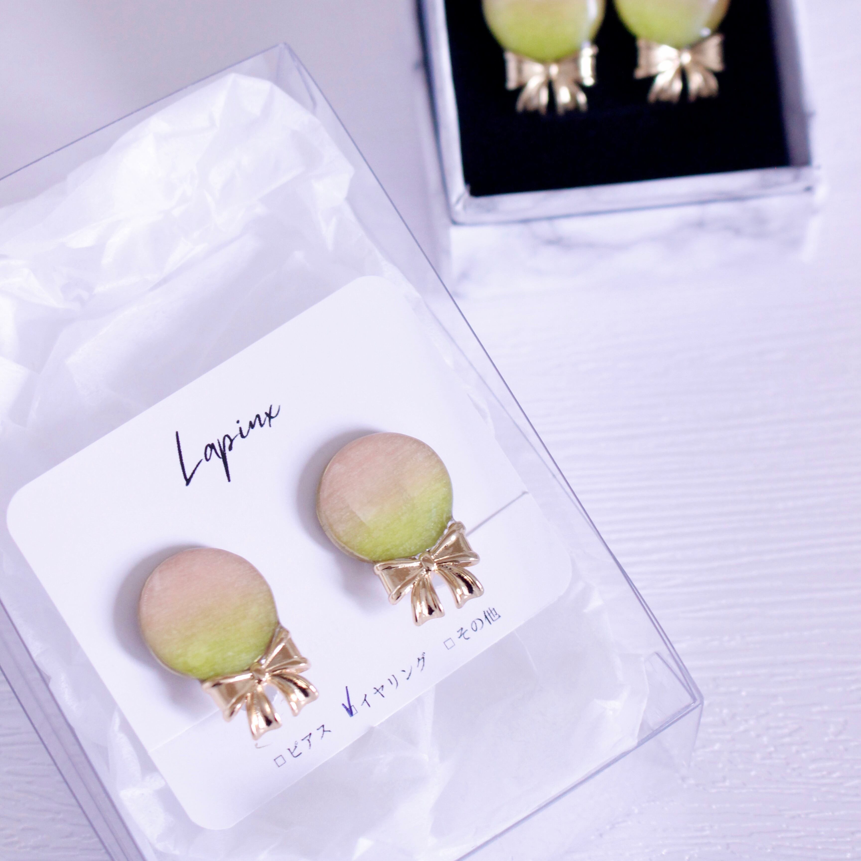 大人可愛いバイカラートルマリンのリボン付き耳飾り
