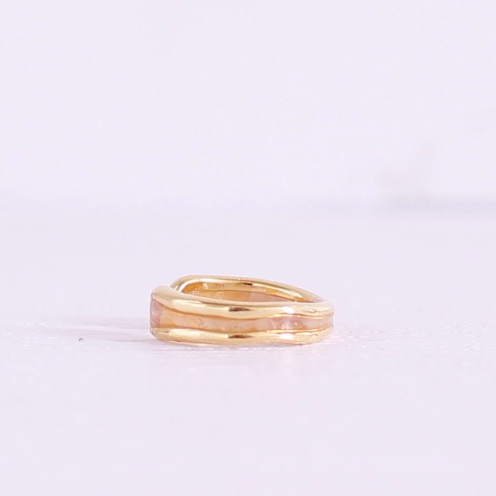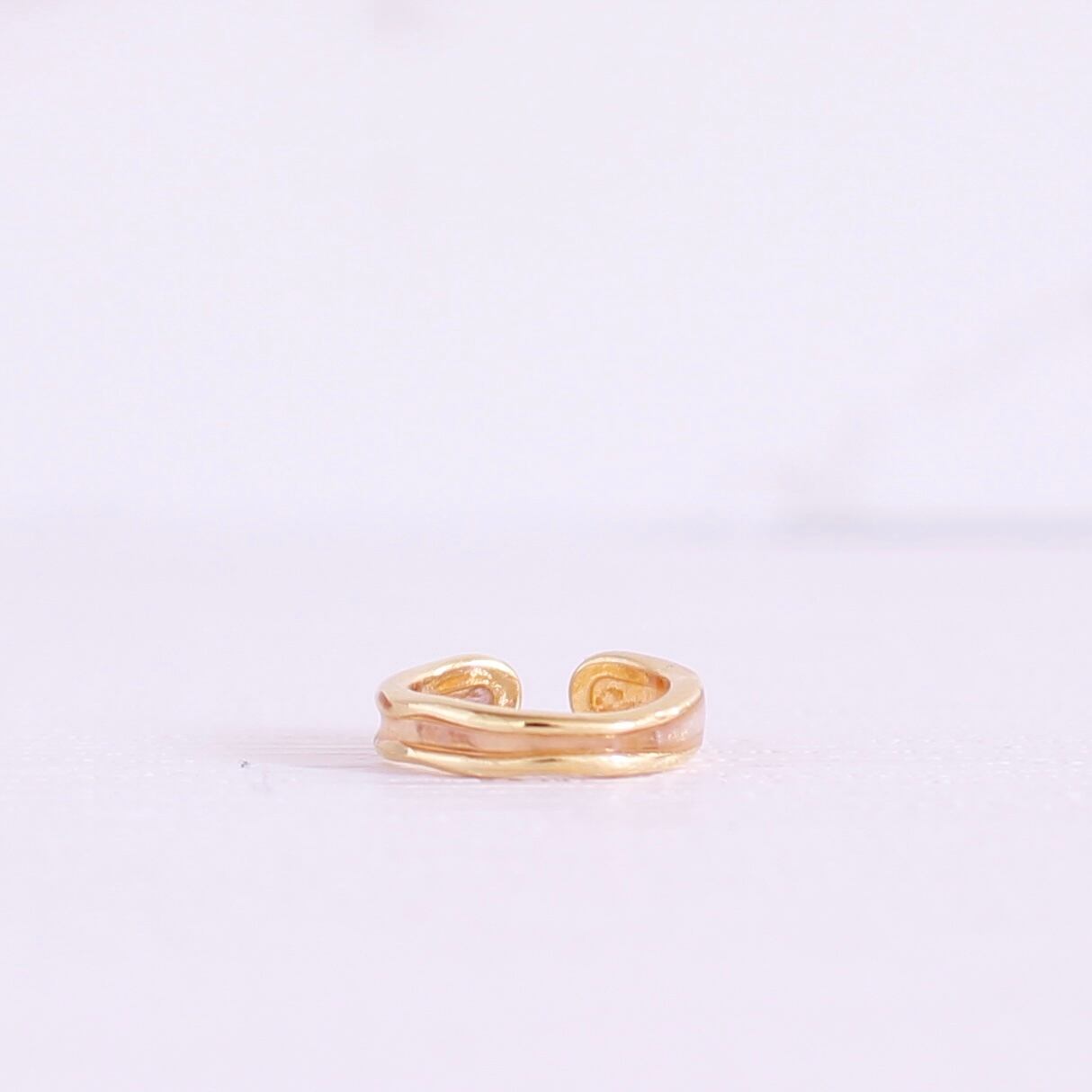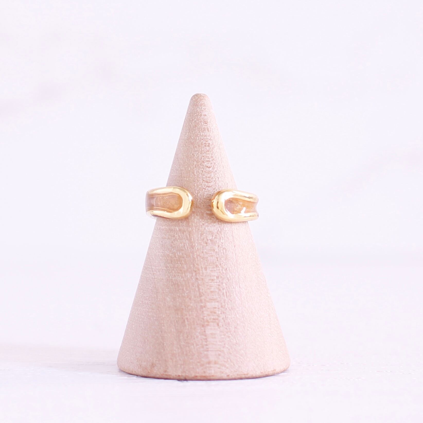 細いリングにラメの入ったオレンジ色のクレイを合わせたイヤーカフ
