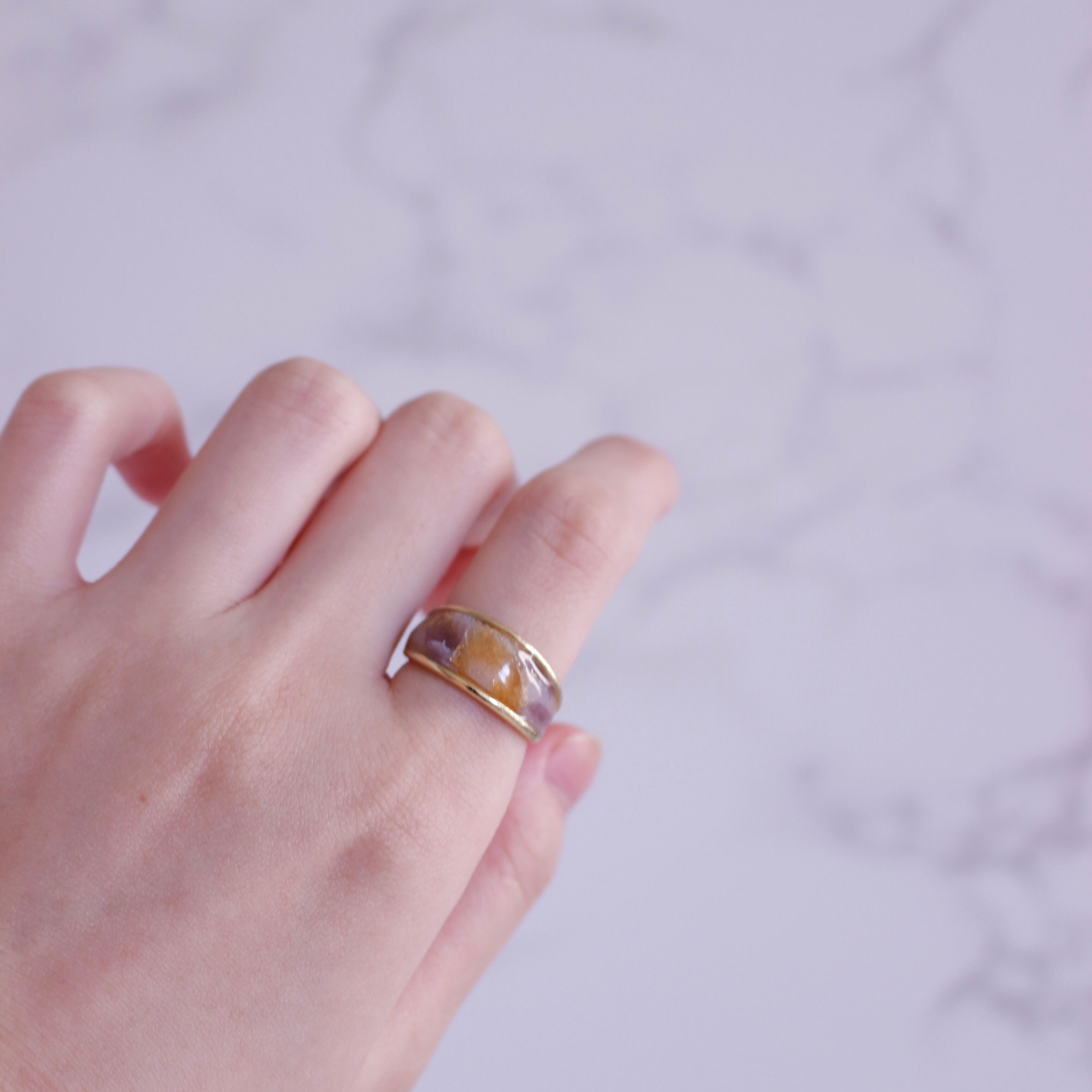 中心部分に金箔が煌めく透け感ある緑を埋め込んだデザイン