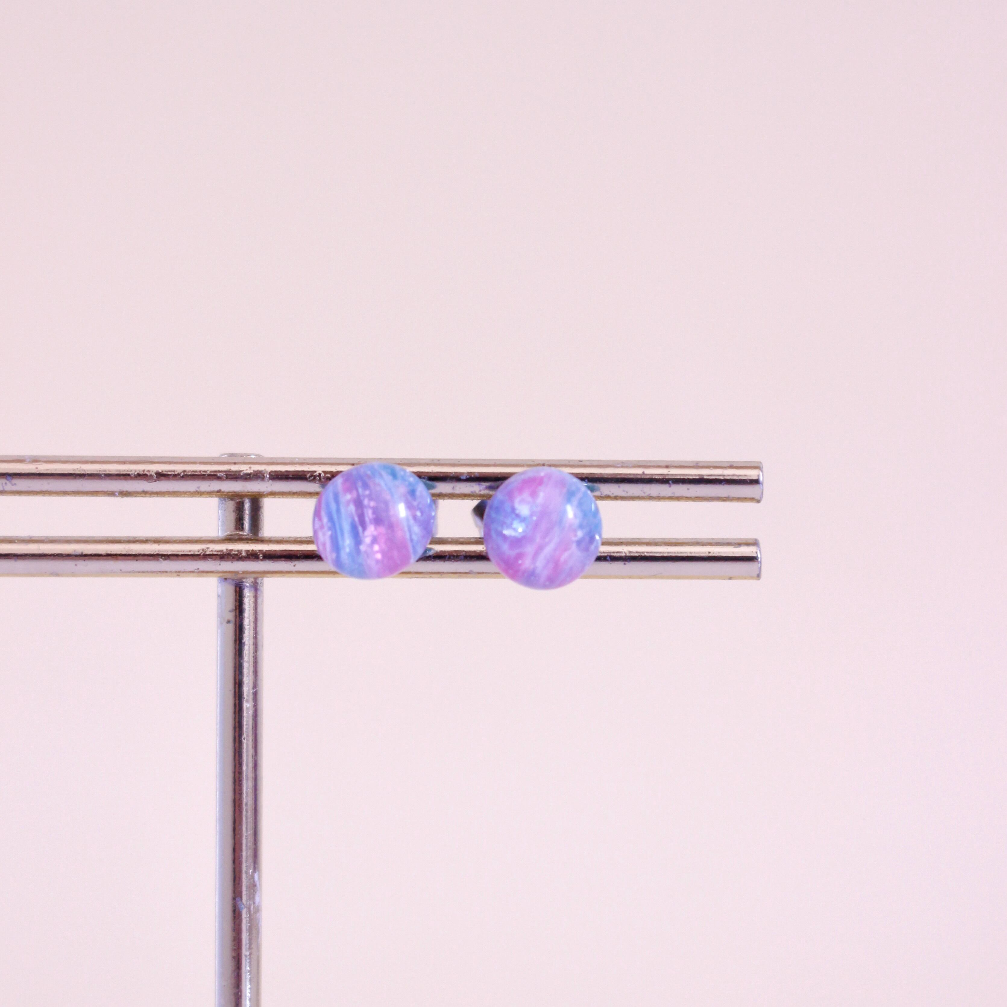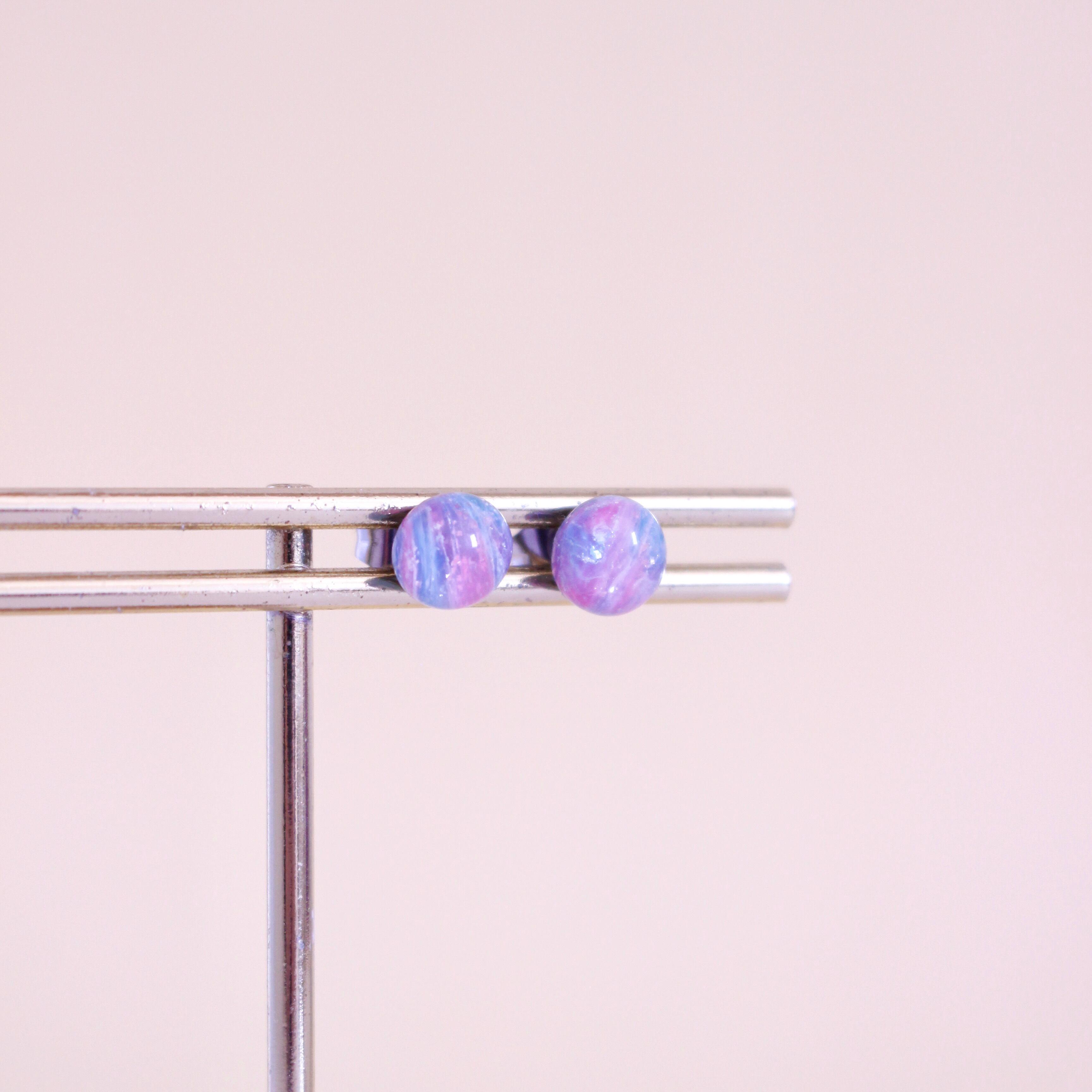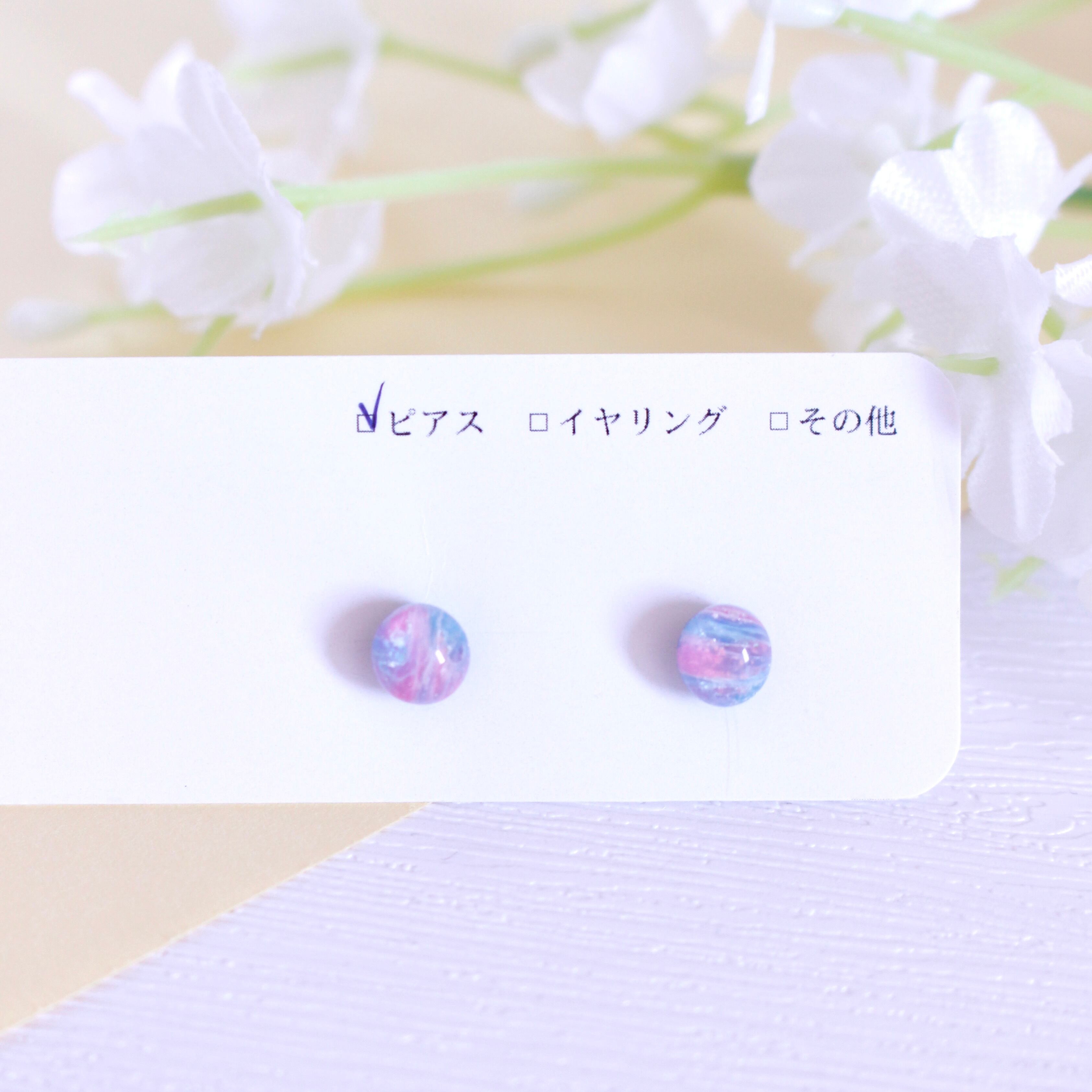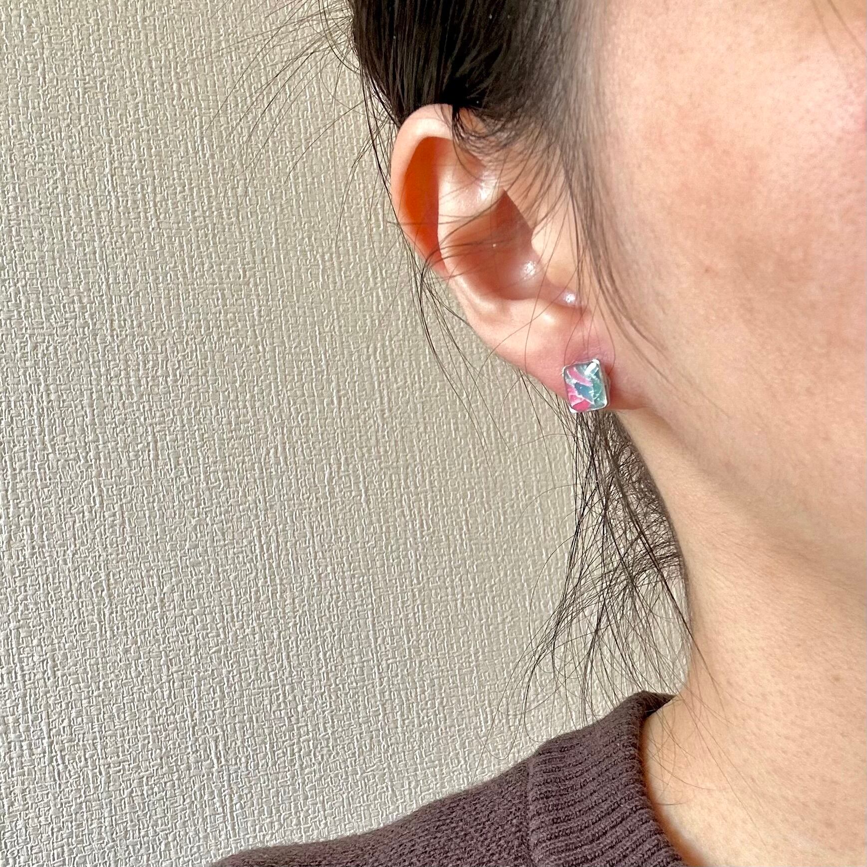 ピンクが映えるPOPなミニマムな耳飾り